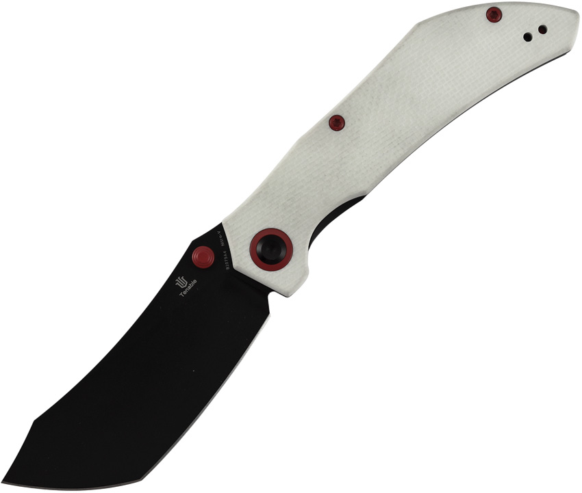 4.5″ (11.43cm) closed. 3.38″ (8.59cm) BlackWash finish Nitro V steel cleaver style blade. White G10 handle. Thumb stud. Pocket clip. Boxed.