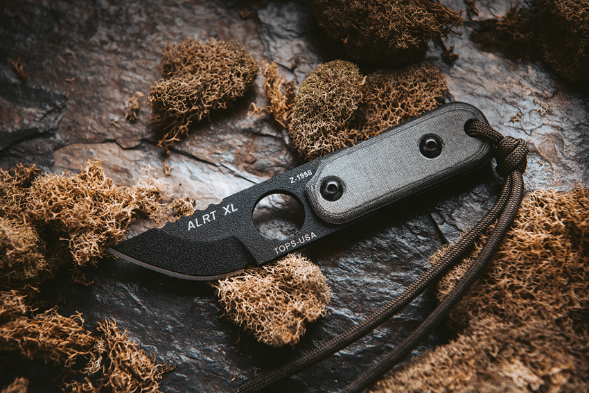 Shop TOPS Knives ALRT Micarta Black Knife TPXL05.