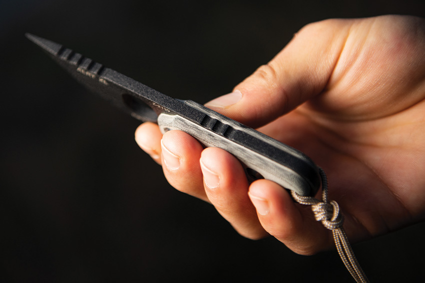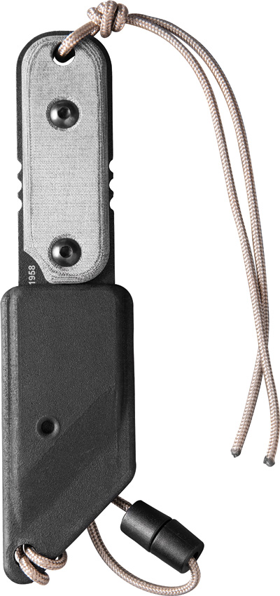 5.38″ (13.67cm) overall. 2.75″ (6.99cm) black traction coated 1095HC steel tanto blade. Black canvas micarta handle. Full tang. Finger ring. Lanyard hole. Black Kydex neck sheath. Bulk packed.