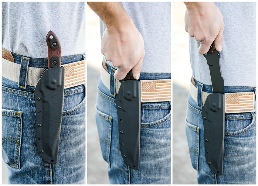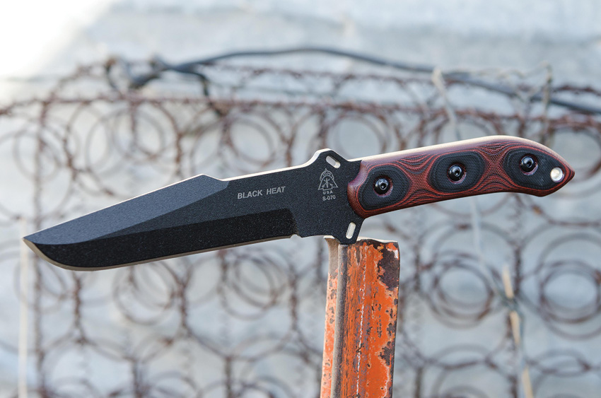 11″ (27.94cm) overall. 6.5″ (16.51cm) black traction coated 1095HC steel blade. Black and red G10 handle. Full tang. Lanyard hole. Black Kydex belt sheath. Bulk packed.