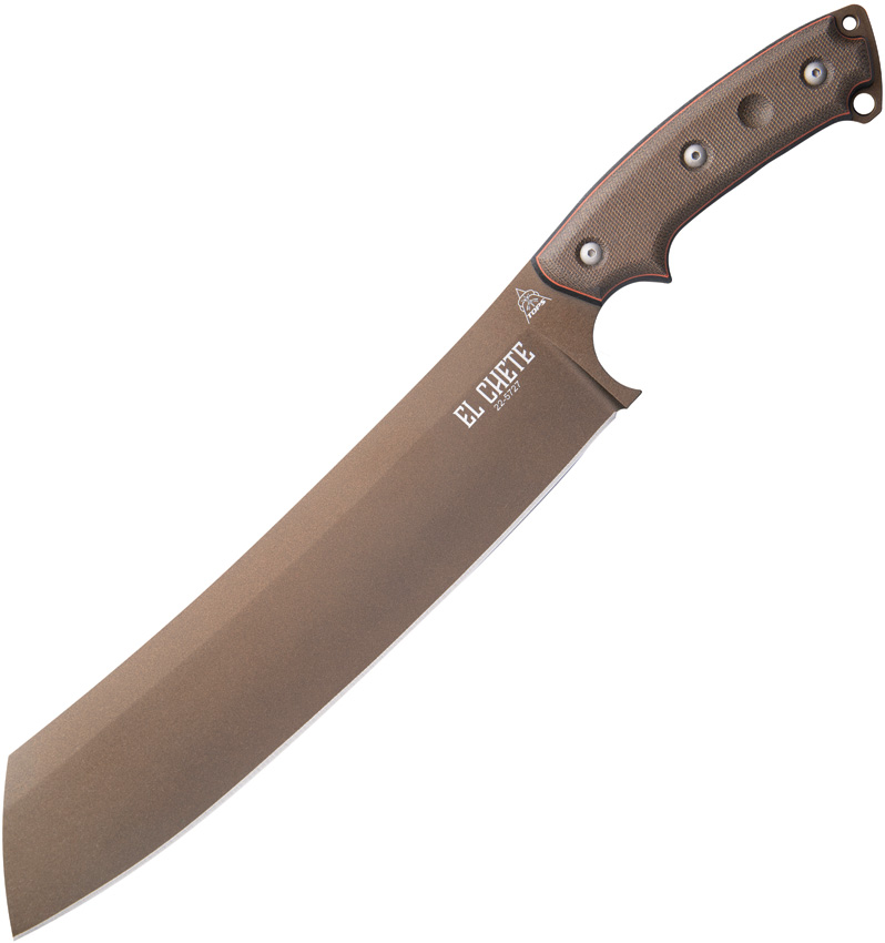 17.5″ (44.45cm) overall. 12″ (30.48cm) Midnight bronze finish 1095HC steel blade. Black and green canvas micarta handle. Full, extended tang. Lanyard hole. Black Kydex belt sheath. Designed by Leo Espinoza. Bulk packed.