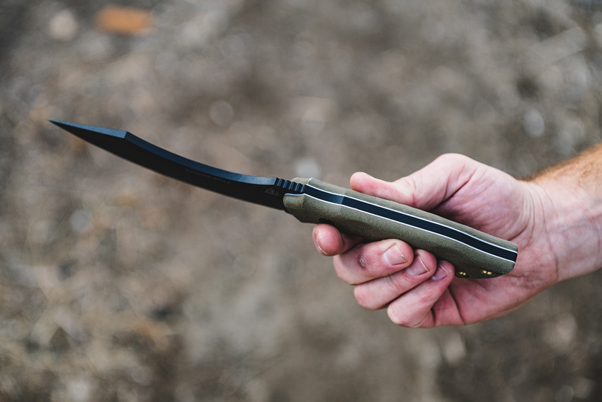 10.88″ (27.64cm) overall. 5.75″ (14.61cm) black traction coated 1095HC steel blade. Green canvas micarta handle. Full tang. Lanyard hole. Bulk packed.