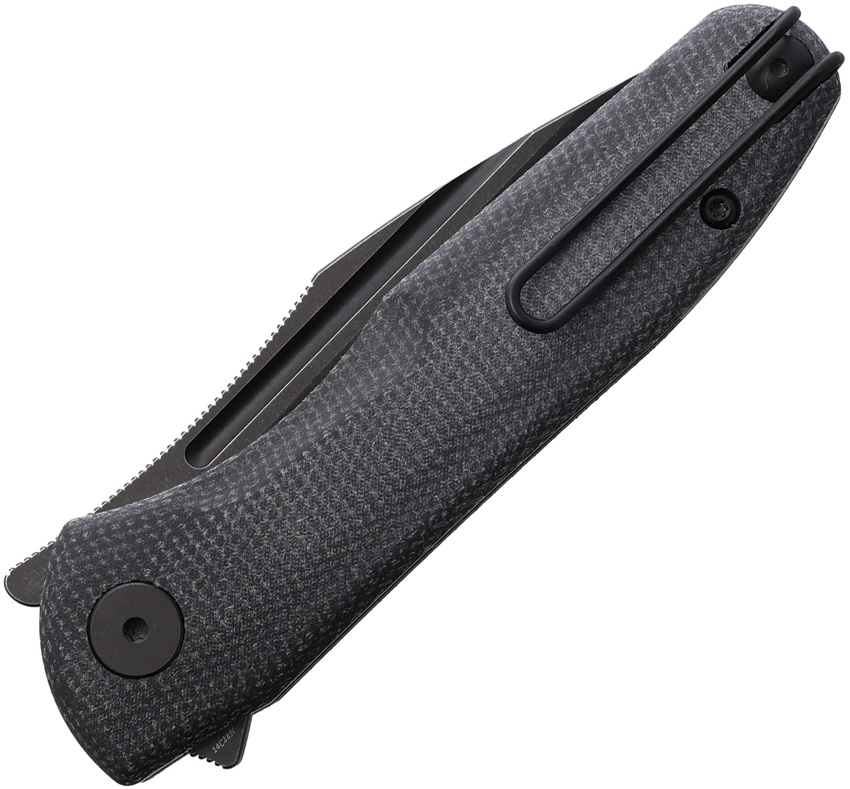 4″ (10.16cm) closed. 3″ (7.62cm) black stonewash finish 14C28N Sandvik stainless blade. Black canvas micarta handle. Extended tang. Pocket clip. Boxed.