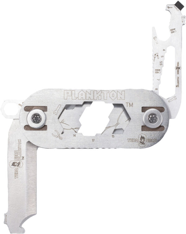 3.5″ overall. Tools include: Large blade l Serrated blade l Wire cutter l Wire stripper l Wrench l Can opener l Bottle opener l Lanyard loop l Hex/Bit driver l Flat head screwdriver l Pry bar l Phillips screwdriver l Glass breaker. Bit holder I Flint striker I Magnet I T25 Torx. Stainless construction. Four tools lock into one. Boxed.