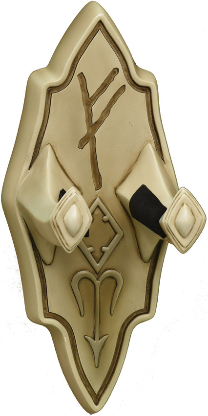 73″ (185.42cm) overall. White hand painted wooden shaft. Crafted from the original movie mold for an authentic reproduction, complete with a certificate of authenticity. Elven-style wall mount. Boxed.