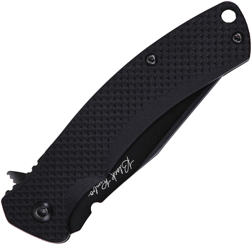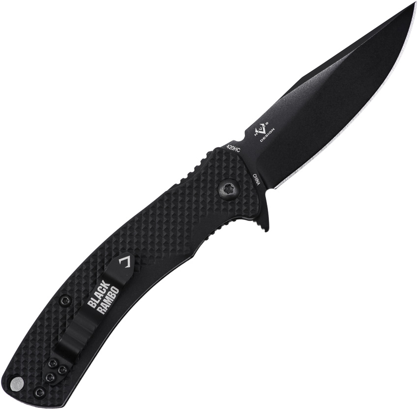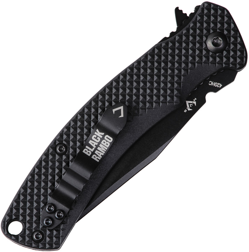 4″ (10.16cm) closed. 2.9″ (7.37cm) black PVD coated 420HC stainless clip point blade. Black textured FRN handle. Extended tang. Lanyard hole. Pocket clip. Clam packed.