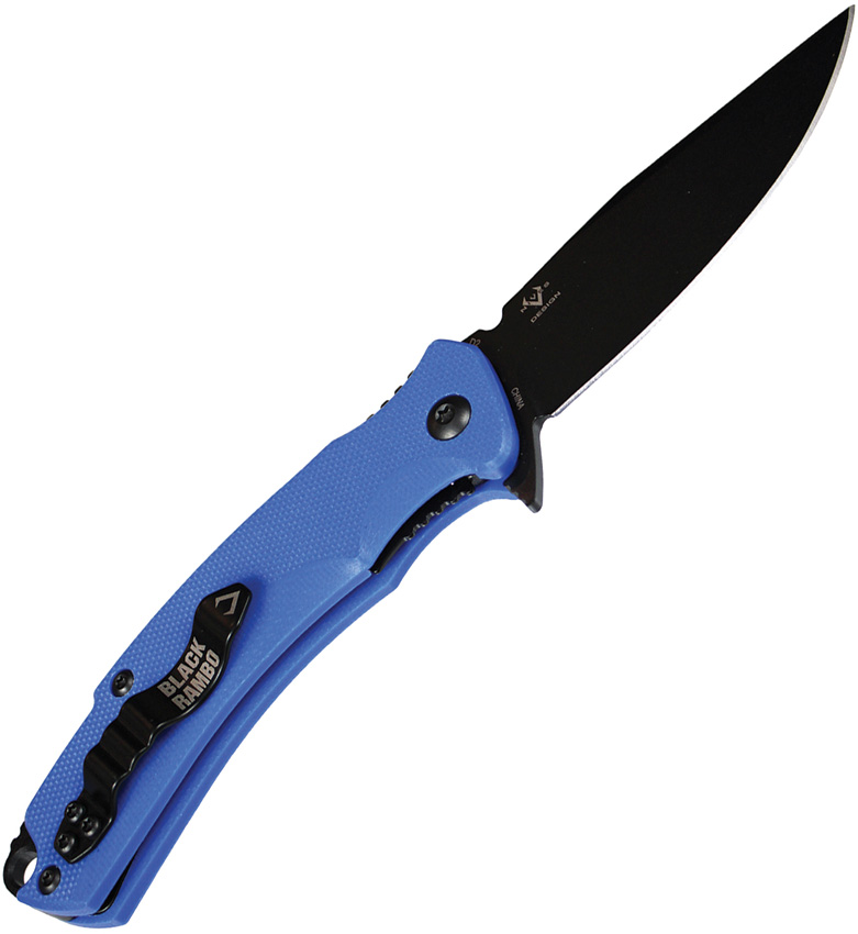4″ (10.16cm) closed. 2.9″ (7.37cm) black PVD coated D2 tool steel clip point blade. Blue G10 handle. Extended tang. Lanyard hole. Pocket clip. Clam packed.