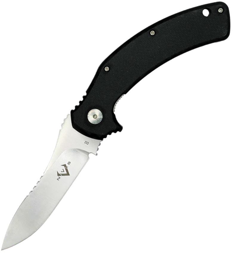 5″ (12.7cm) closed. 3.63″ (9.22cm) satin finish D2 tool steel blade. Black FRN handle with stainless back handle. Lanyard hole. Pocket clip. Clam packed.