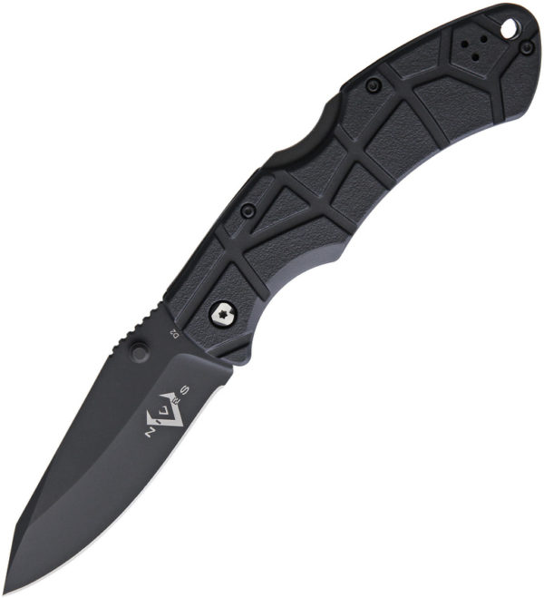 4.63″ closed. 3.25″ black oxide coated D2 tool steel drop point blade. Black sculpted FRN handle. Thumb stud. Lanyard hole. Pocket clip. Storage case.