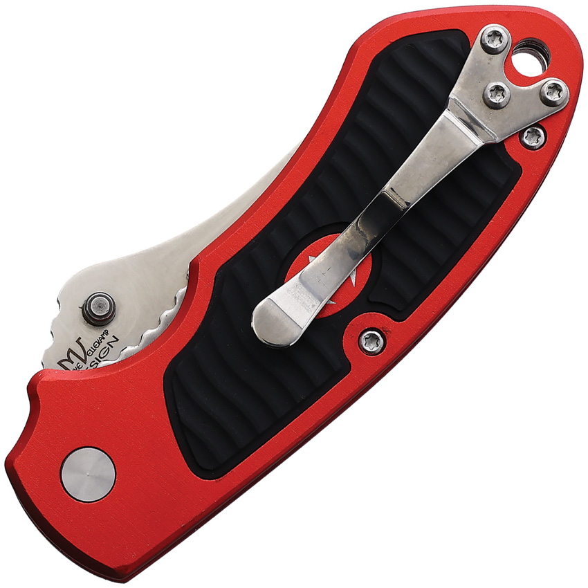 3.5″ (8.89cm) closed. 2.5″ (6.35cm) satin finish 8Cr14MoV stainless blade. Red aluminum handle with black rubber insert. Thumb stud. Lanyard hole. Pocket clip. Boxed.