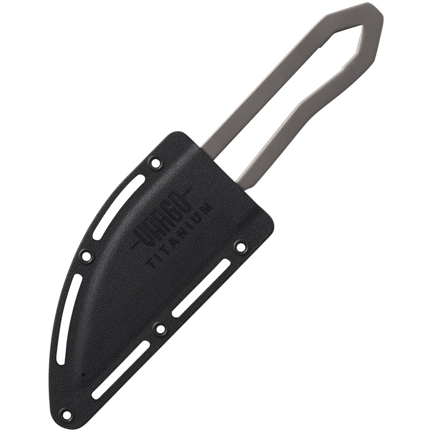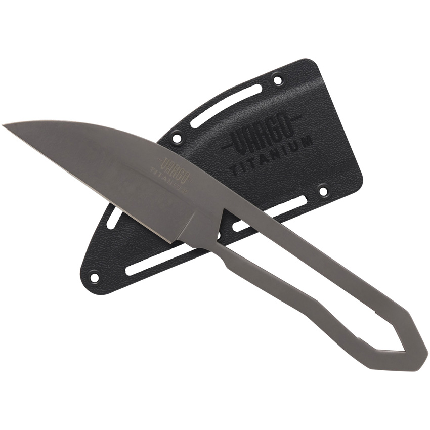 6.88″ (17.48cm) overall. 3″ (7.62cm) titanium Wharncliffe blade. One-piece construction. Black Kydex sheath. Hang packaged.