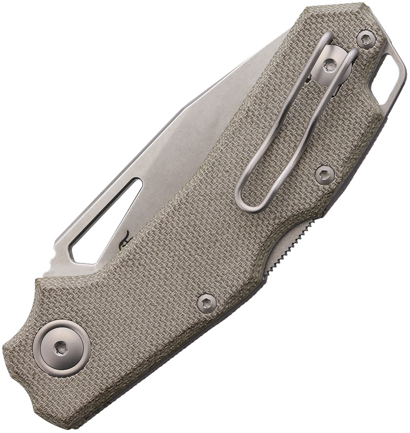 3.88″ (9.86cm) closed. 2.88″ (7.32cm) stonewash finish MagnaCut steel blade. Green canvas micarta handle. Thumb pull. Lanyard hole. Pocket clip. Boxed.