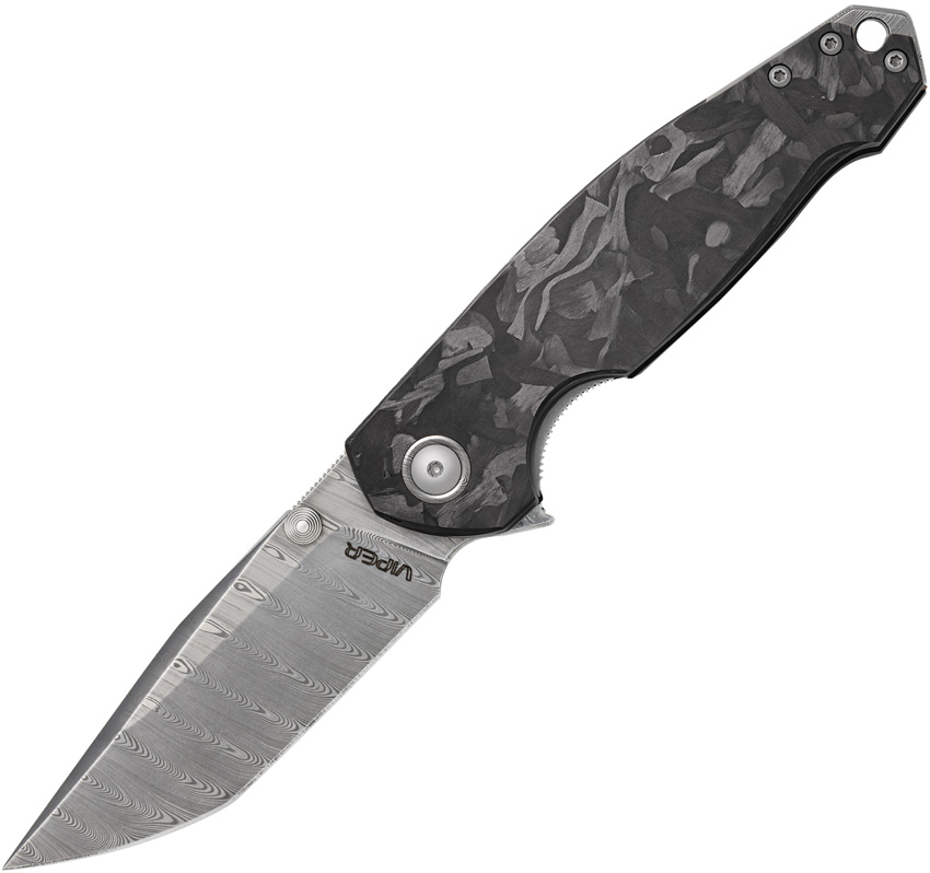 4.5″ (11.43cm) closed. 3.25″ (8.26cm) Damascus steel blade. Carbon fiber handle. Extended tang. Lanyard hole. Pocket clip. Thumb stud. Boxed.