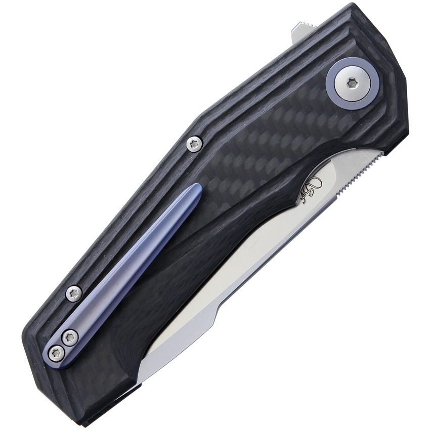 4.25″ closed. 3.25″ satin finish Bohler M390 stainless drop point blade. Carbon fiber handle. Extended tang. Pocket clip. Designed by Fabrizio Silvestrelli. Boxed.