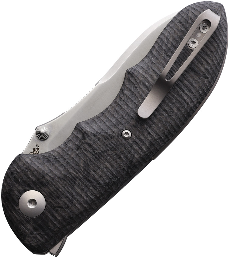 4.5″ (11.43cm) closed. 3.5″ (8.89cm) satin finish MagnaCut steel blade. Dark Matter carbon fiber handle. Thumb stud. Extended tang. Pocket clip. Boxed.