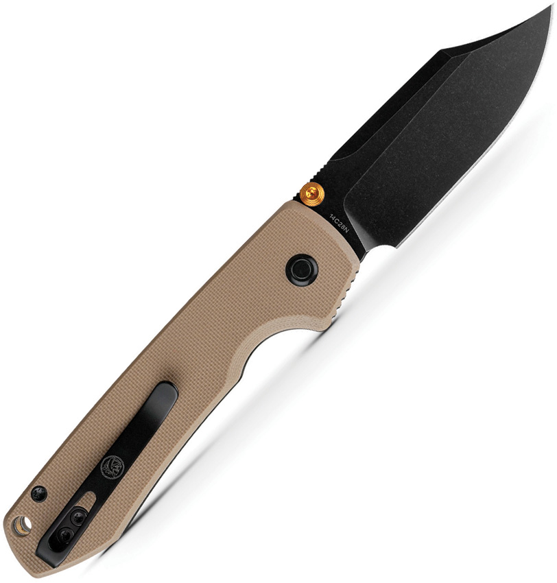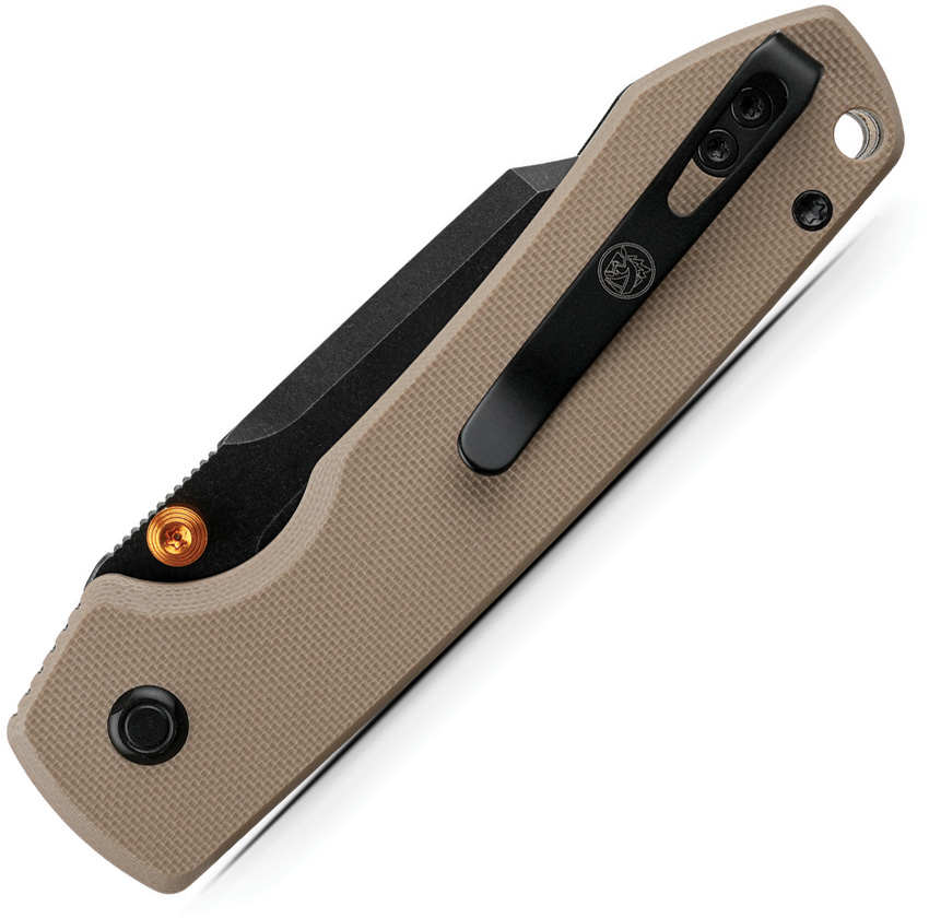 4.38″ (11.13cm) closed. 3.25″ (8.26cm) black stonewash finish 14C28N Sandvik stainless clip point blade. Sand G10 handle. Thumb stud. Lanyard hole. Pocket clip. Black nylon zippered storage case. Boxed.