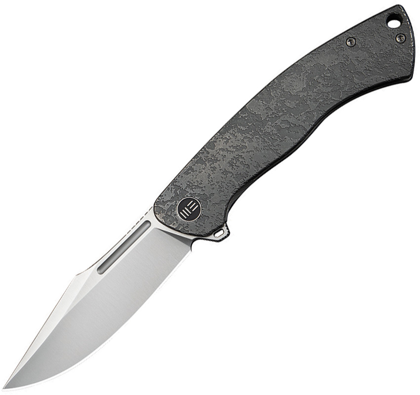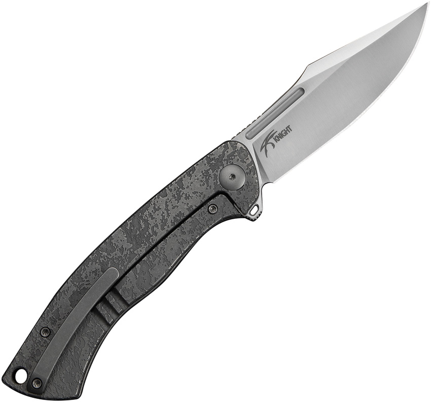5″ (12.7cm) closed. 3.63″ (9.22cm) satin finish Bohler M390 stainless clip point blade. Gray titanium handle. Extended tang. Pocket clip. Lanyard hole. Etched pattern handle. Black nylon zippered storage case. Boxed.