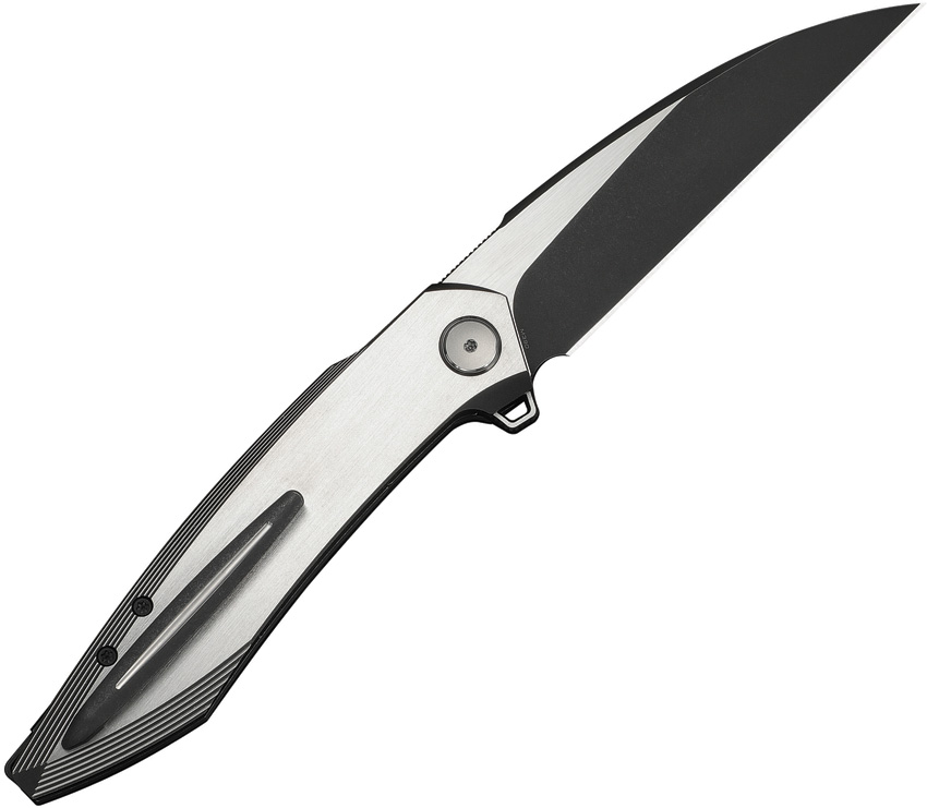 5″ (12.7cm) closed. 4″ (10.16cm) black stonewash and satin finish Bohler M390 stainless Wharncliffe blade. Black and satin titanium handle. Extended tang. Pocket clip. Black nylon zippered storage case. Boxed.