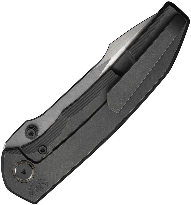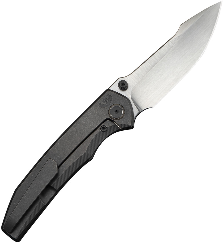 4.3″ (10.92cm) closed. 3.3″ (8.38cm) satin finish Bohler M390 stainless harpoon style blade. Gray stonewash finish titanium handle. Thumb stud. Pocket clip. Black nylon zippered storage case. Boxed.