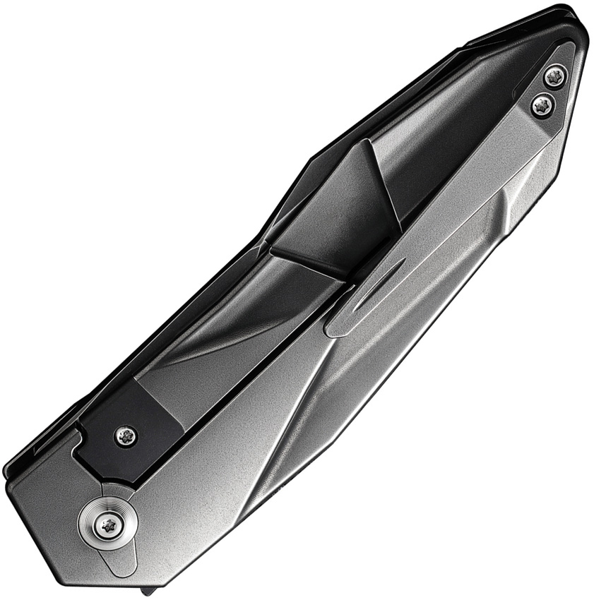 5.13″ (13.03cm) closed. 3.88″ (9.86cm) black stonewash finish CPM-20CV stainless blade. Bronze anodized titanium handle. Pocket clip. Black nylon zippered storage case. Boxed.