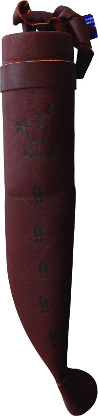 8.5″ (21.59cm) overall. 3.5″ (8.89cm) carbon steel blade. Curly Birch handle. Reindeer horn pommel. Animal tracks on sheath. Due to the natural materials used, knife dimensions could vary. Brown leather belt sheath. Bulk packed.