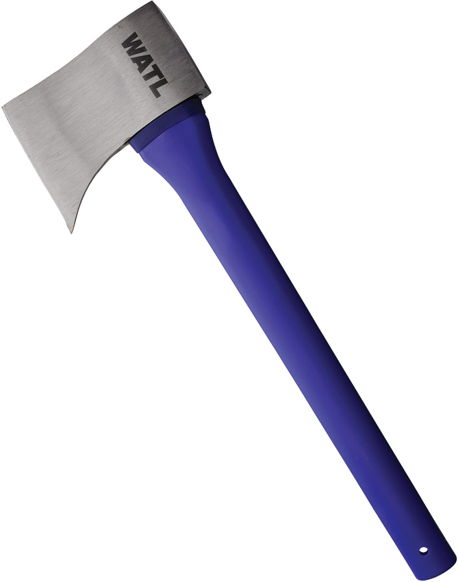 17″ overall. 5″ brushed finish 1045 carbon steel axe head with 4″ cutting edge. Weight: 2.25lb. 1.65 lb head. Blue molded fiberglass handle. Bulk packed.