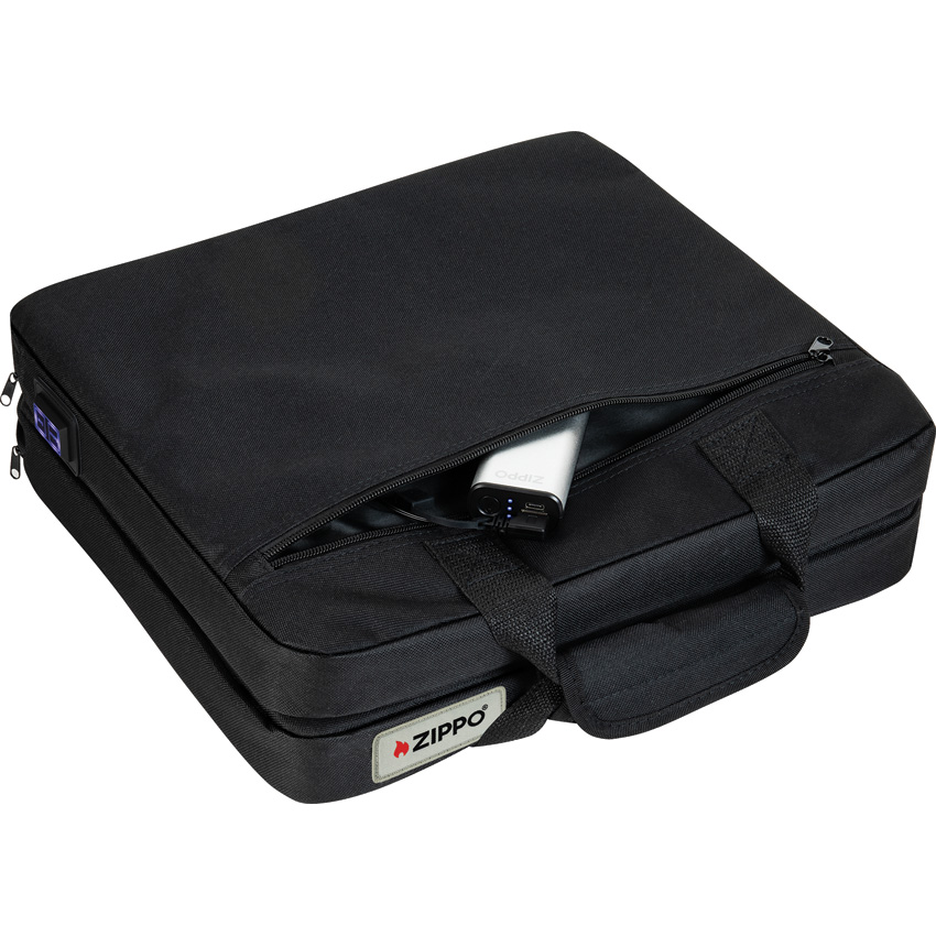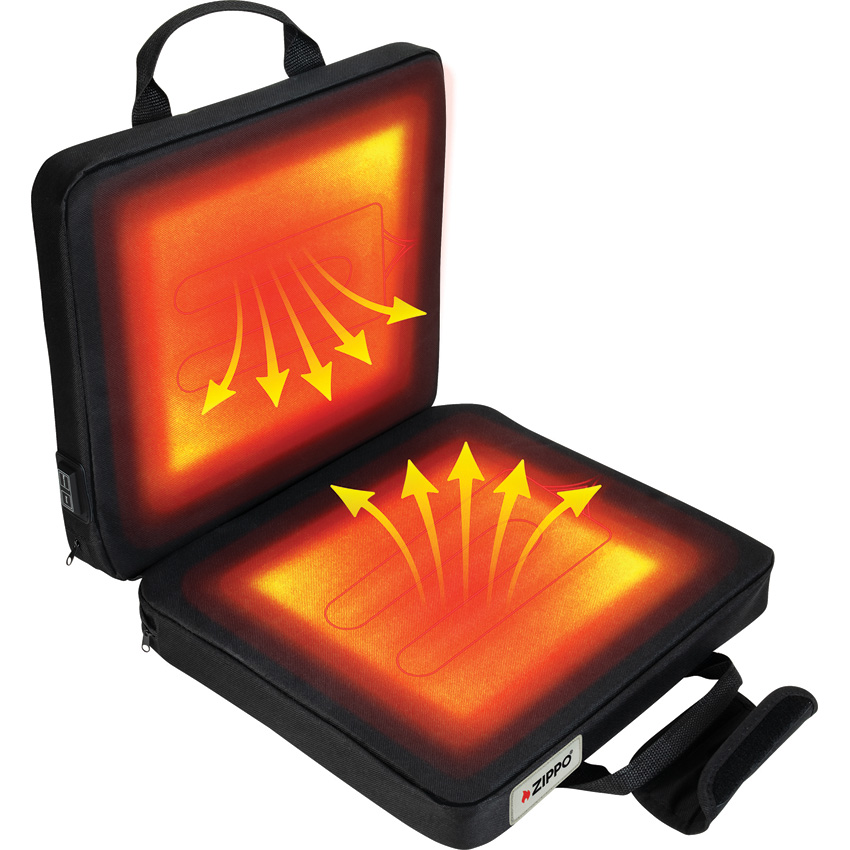 Dimensions: 15″ x 13.75″ x 4″. Up to 12 hours of heat. Three heating levels per surface (High, Medium, Low). Water-resistant nylon construction. Integrated power source pocket for USB battery power source. Durable handle. For use with any USB-compatible power source (not included); for optimal performance, use with Zippo HeatBank 6, 6 Pro, 9s or 9s Plus models. Black. Bulk packed.