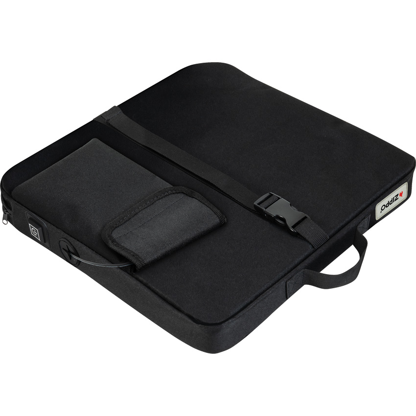 Dimensions: 15″ x 13.75″ x 4″. Up to 6 hours of heat. Three adjustable heat settings up to 135 degrees operating temperature. Water-resistant nylon construction. Integrated power source pocket for USB battery power source. Durable handle. For use with any USB-compatible power source (not included); for optimal performance, use with Zippo HeatBank 6, 6 Pro, 9s or 9s Plus models. Bulk packed.