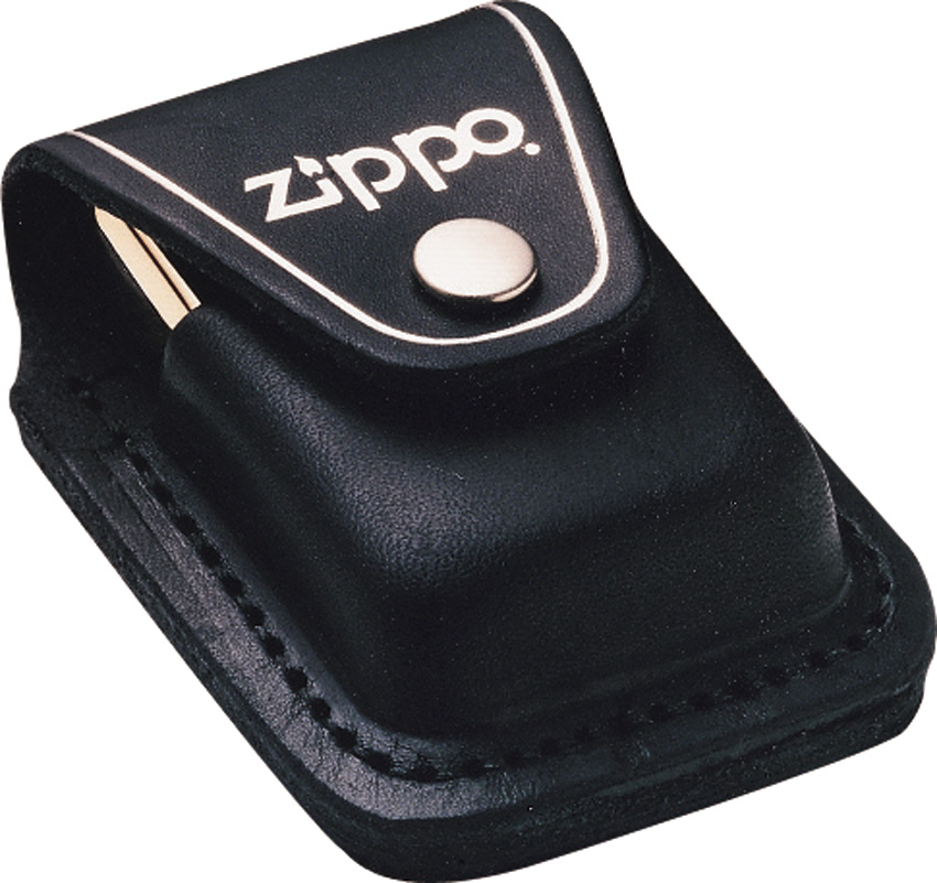 Fits any standard Zippo lighter. Snap closure. Leather construction. Black.