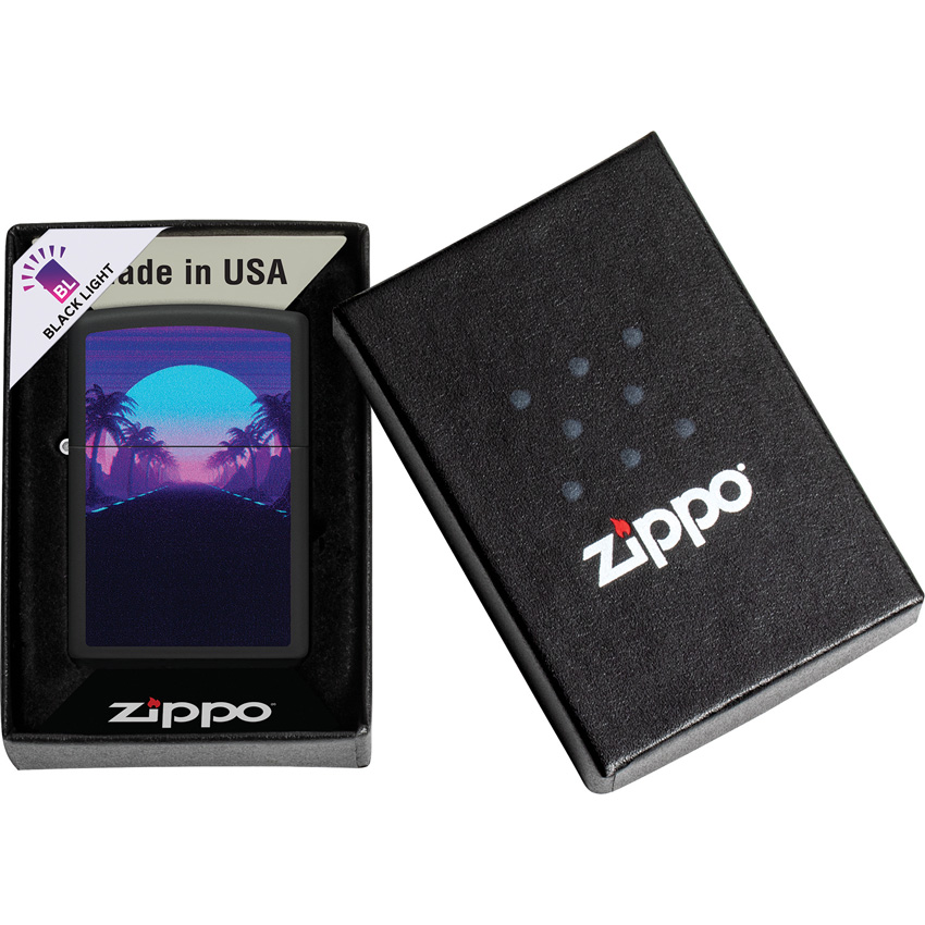 Dimensions: 0.5″ x 2.25″. Place it under ultraviolet light to reveal a scene applied with a special Blacklight process. Black Matte. Boxed.