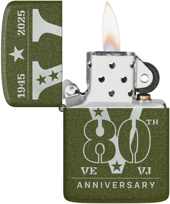 Dimensions: 2.19″ x 0.5″. All steel construction about 1.5 times as thick as a standard Zippo case. The 1941 Replica model pays homage to the lighters carried by American military members during the war and features a laser engraved commemorative design. Green crackle finish. Boxed.